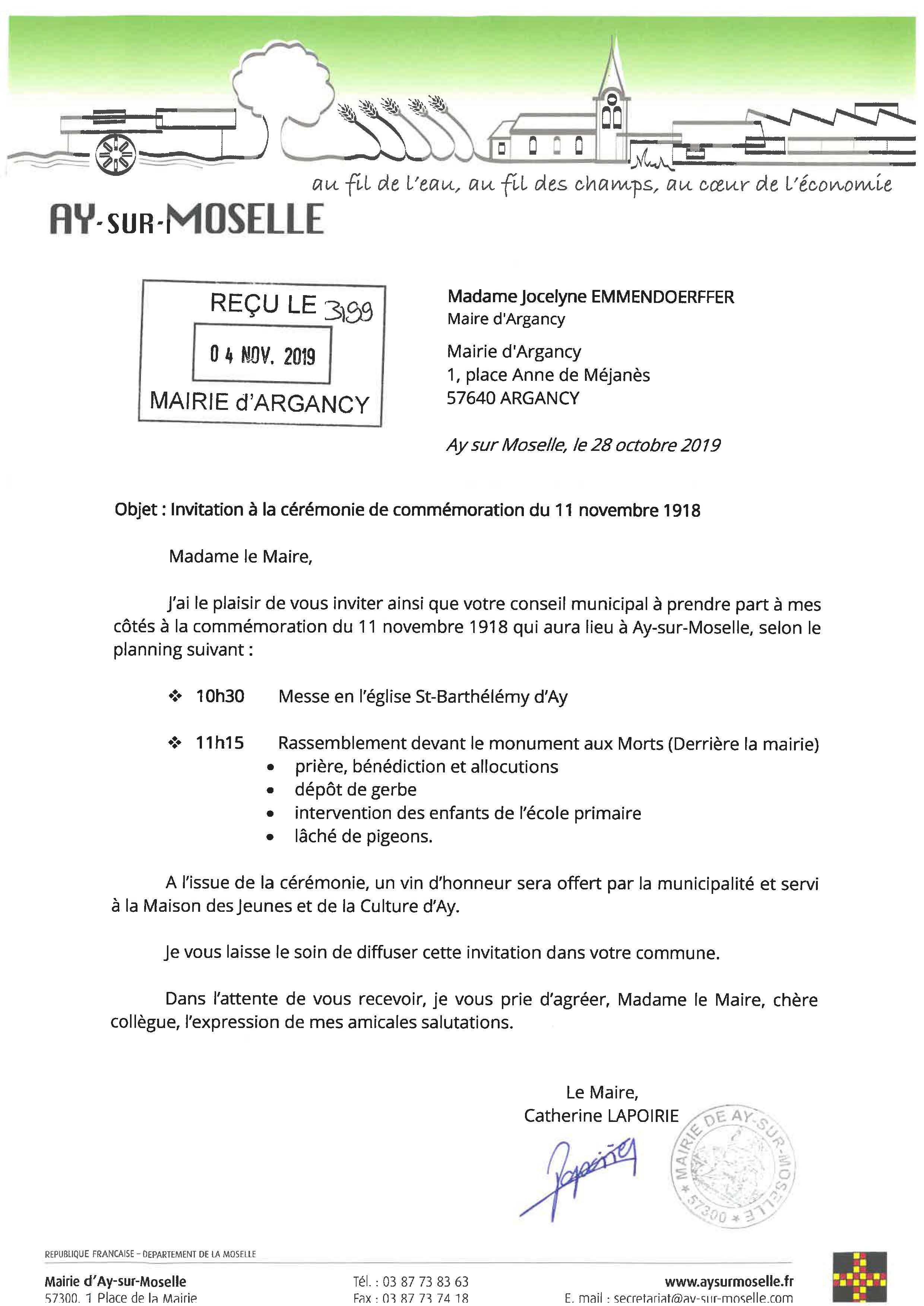 J'ai l'honneur de vous informer que le conseil municipal se réunira à la mairie d'Argancy le :